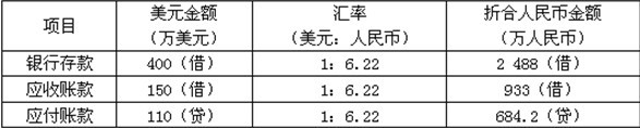 注:银行存款(美元户)汇兑差额=(400+1 000+60-80)×6.25-(2 488+1 000×6.24+60×6.26-80×6.23)=19.8(万元)(借方)