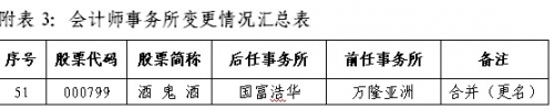 快报信息还显示,中注协通过对会计师事务所业务报备信息的统计了解到,1月24日—1月28日,有1家上市公司变更了会计师事务所(详见附表3)。截至1月28日,共有51家上市公司变更了会计师事务所,其中,28家的变更原因为会计师事务所发生合并(更名)。