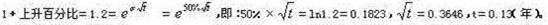 11、在多期二叉树模型中,已知标的资产连续复利收益率的方差为25%,股价上升百分比为20%,则以年表示的时段长度t的数值为( )。